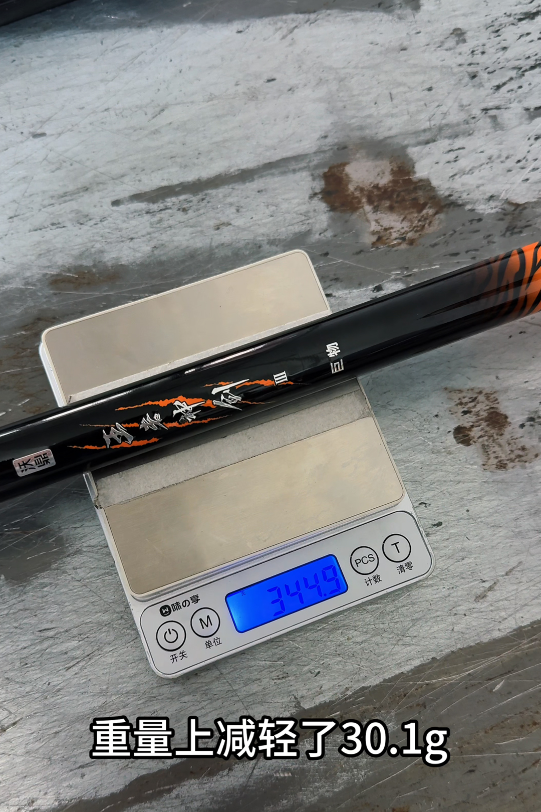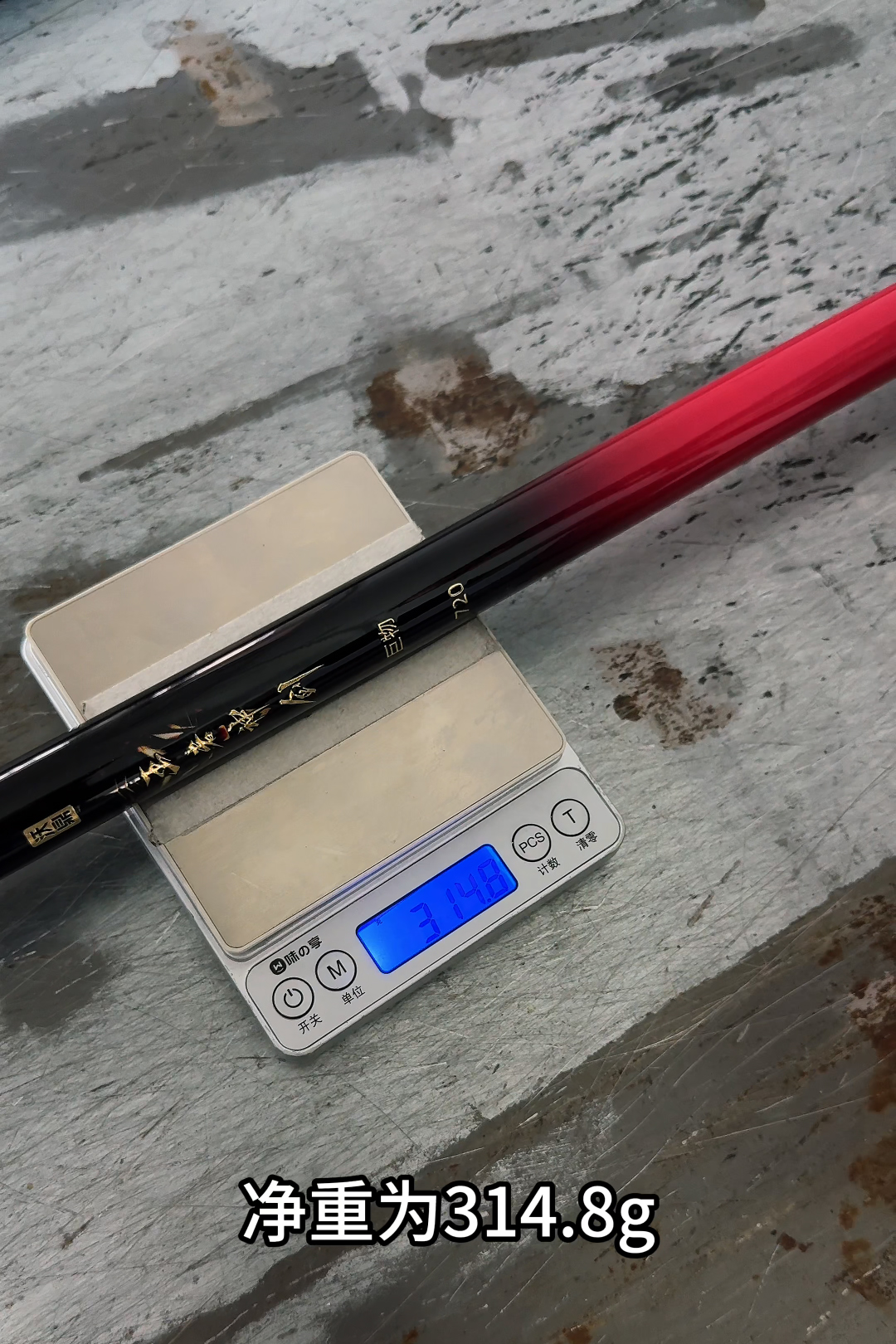 平时喜欢挑战巨物的钓友们,看过来!到你们的主场啦~ 本期内容,小编将为大家奉上王者神剑四代大物竿巨物版7.2m的重量、锥度、调性、钓重等参数的升级对比实测。巨物版的升级点在哪里呢?一起来揭秘! 净重揭秘 重量实测: ■ 王者神剑四代大物竿巨物版7.2m去前后堵净重:314.8g ■ 王者神剑三代大物竿巨物版7.2m去前后堵净重:344.9g 实测可见,王者神剑四代大物竿巨物版7.2m相较三代巨物版7.2m轻了30.1g,重量大幅减轻,在巨物竿中可以说是持感非常轻盈了。 锥度实测 前后元径实测: 王者神剑四代大物竿巨物版7.2m ■ 前元径:22.3mm ■ 后元径:26mm ■ 竿稍先径实测:1.4mm 王者神剑三代大物竿巨物版7.2m ■ 前元径:22.71mm ■ 后元径:26.76mm 王者神剑四代大物竿巨物版7.2m锥度相对较小,实际作钓时抛投性能和破风性都会比较强。 调性测试 ■ 调性:28偏19调 抖动鱼竿可以发现,王者神剑四代大物竿巨物版7.2m是标准的28偏19调性,具备良好的稳定性与一体感。 重心实测 ■ 7.2m带后堵重心:210cm 实测结果重心相对靠后,实际作钓时的手感会很不错。 硬度、回弹及腰力实测 ■ 砝码:200g 200g的钓重下竿子竿稍顶端出现少许弯曲,前端的硬度和回弹力表现优异。 ■ 砝码:500g 500g的钓重下竿子前端强韧,中段硬挺,弧度表现非常不错。 ■ 砝码:2000g 实测可见,在2000g钓重下,鱼竿受力点达到了第四节,受力比较轻松,竿子腰力表现非常强悍。 钓重实力 钓重实测: ■ 成功钓起:7000g 成功钓起7000g后爆竿,达到了6500g-7000g的人工钓重设计范围,实际作钓时可以应对80斤以内的鲤鱼/翘嘴/鳊鱼/草鱼/鲢鳙/青鱼。 以上就是王者神剑四代大物竿巨物版的实测内容,在保持钓重基本不变的基础上,四代大物竿巨物版7.2m比三代大物竿巨物版7.2m净重降低了30g左右,强度不变的情况下竿身更加轻盈。 4月25日20:00首发,感兴趣的大物猎人们,记得关注后续的实钓内容哦~